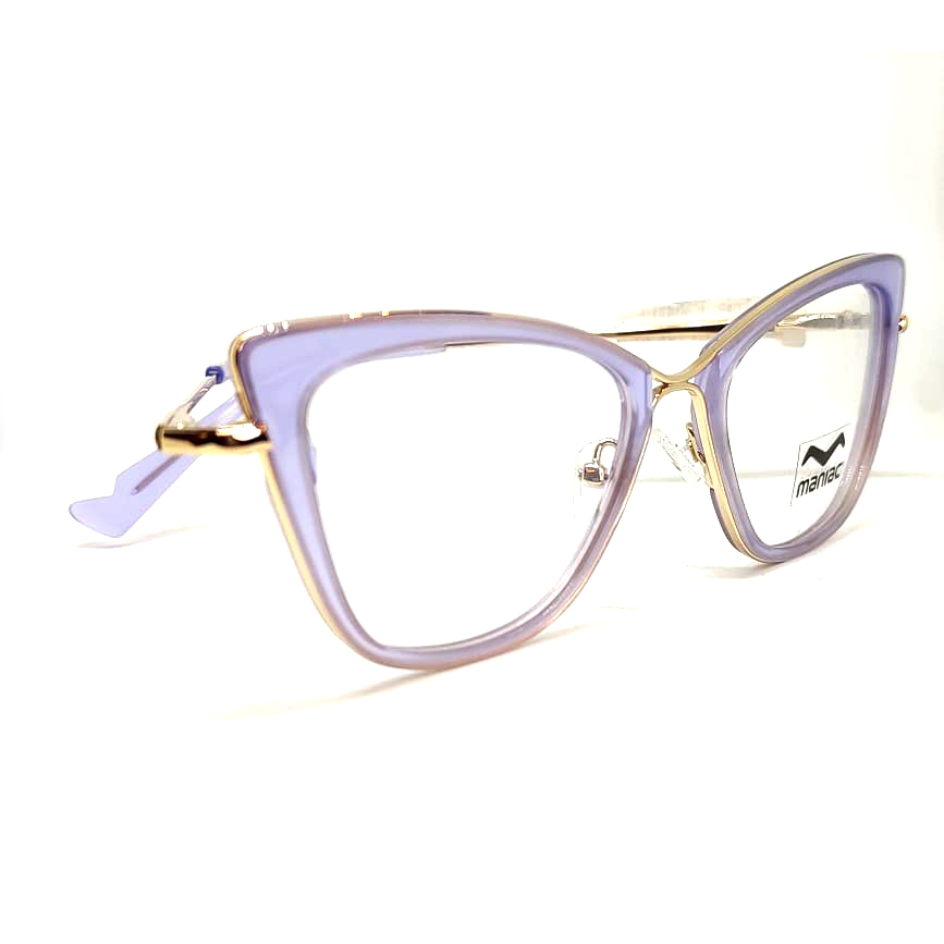 armazon de acetato con metal diseño gatuno frente de lila cristal con patillas doradas